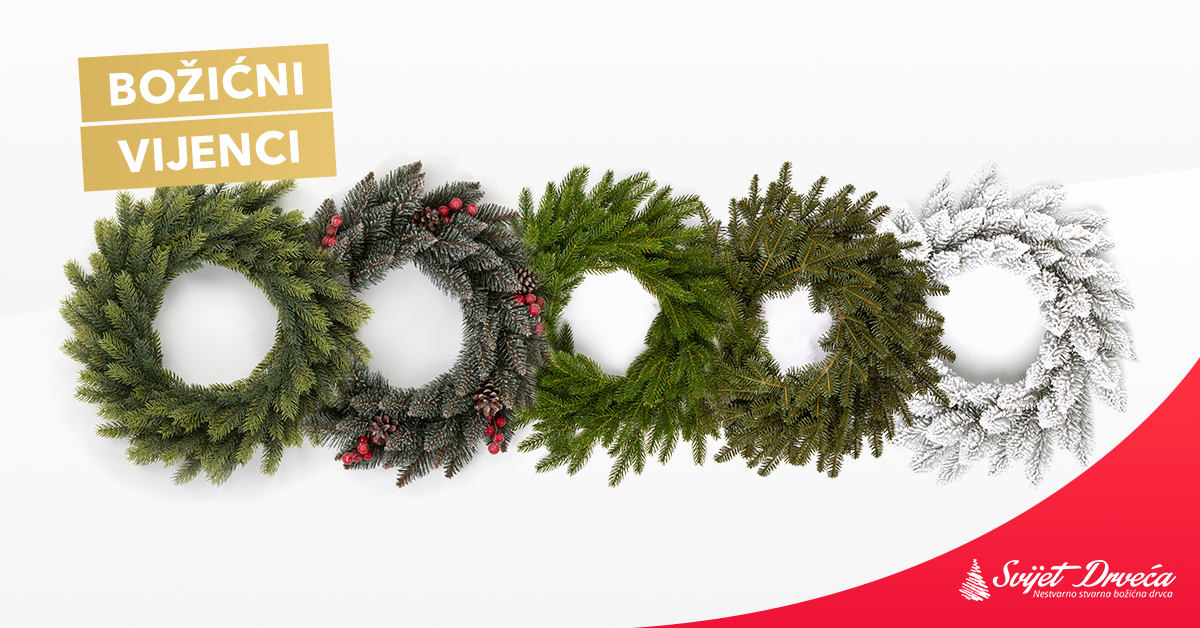 Nudimo vam kvalitetne božićne vijence prikladne kao ukrasi za stol, vrata ili za vješanje bilo gdje na zidu. Adventski božićni vijenci dostupni su u različitim modernim dizajnom: zeleni, bijeli, snježni ili s 3D iglama, a koji se ne razlikuju od prirodnih božićnih vijenaca.