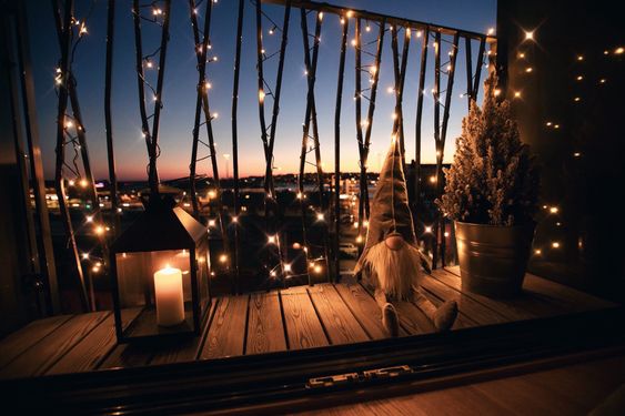 Vanjske božićne lampice zajamčeno uključuju balkon. Ukrasite svoj balkon u jarkim bojama ili se kladite na elegantne nijanse srebrne ili zlatne. Možete koristiti i same LED lampice, svjetlosne lančiće umotane u girlande, ali i razne svjetleće božićne šare koje pričvrstite na balkon.
