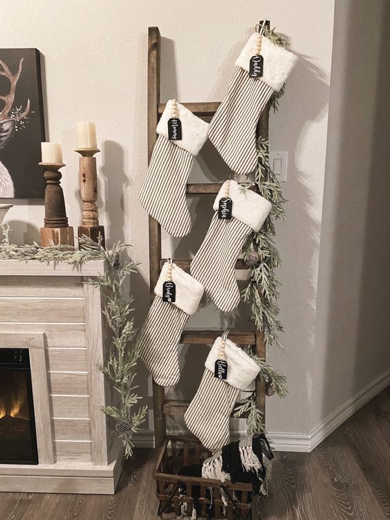 Prekrasan ukras možete lako napraviti kroz stare drvene ljestve, na koje pričvrstite četinare i božićne čarape, na koje će vam Djed Božićnjak (ako ste slušali) donijeti darove.