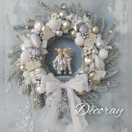 Poput snježnih božićnih drvca, vrlo su popularni bijeli božićni vijenci za vrata. A što ako bijeli božićni vijenac ipak ukrasimo bijelim ukrasima? To će stvoriti savršen zimski ukras. Bijele božićne ukrase možete kombinirati s manjim brojem ukrasa u srebrnoj ili krem boji, a mi jamčimo da ćete se osjećati kao u bajkovitom, ledenom kraljevstvu. No, ako vam je bilo previše bijele boje, na vijenac možete pričvrstiti nekoliko božićnih kuglica u nježnim, pastelnim nijansama.