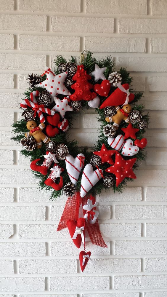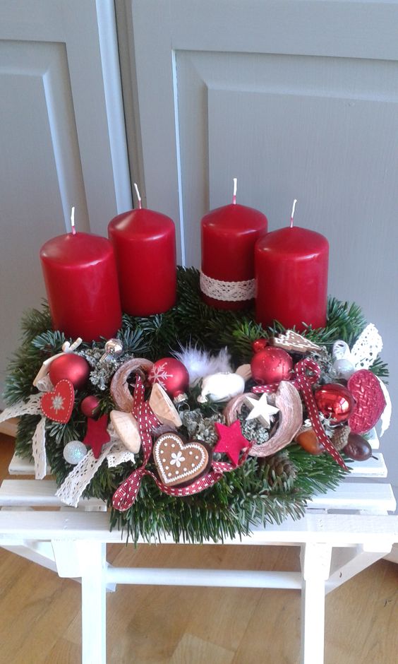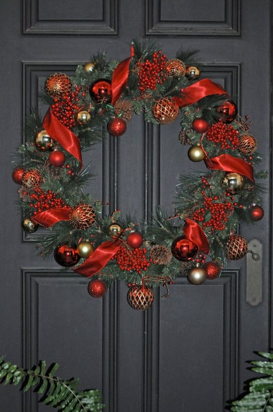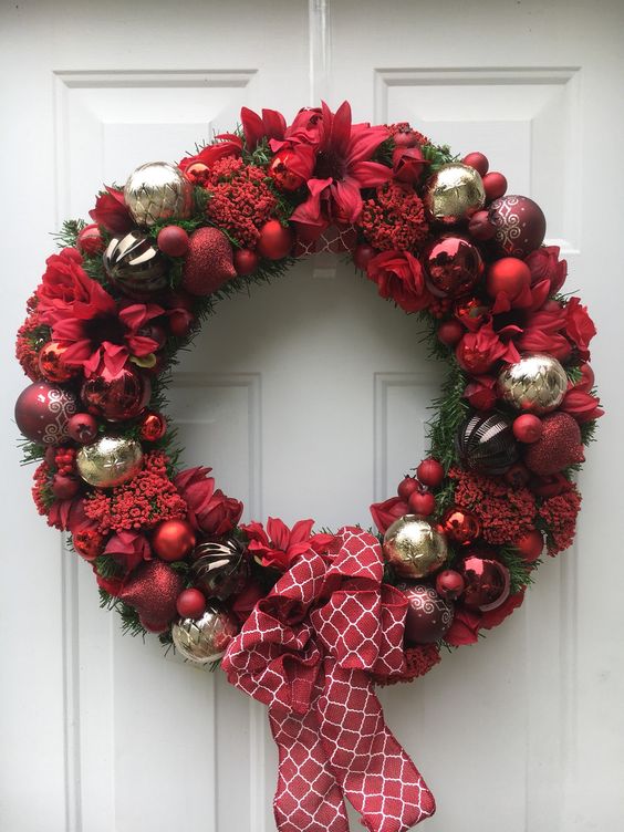 Ukratko, crvena boja pripada Božiću, pa nije ni čudo da se svake godine pojavi niz božićnih ukrasa u ovoj boji. Crveni ukrasi lijepo će se vidjeti na zelenoj pozadini, stoga preporučujemo da odaberete čisti božićni vijenac cijele boje, koji ćemo potom ukrasiti crvenim ukrasima. Božićni vijenac za vrata možete ukrasiti crvenim božićnim kuglicama, crvenim vrpcama, cvijećem ili drugim ukrasima raznih oblika. Crveni ukrasi će se lijepo pokazati ako ih kombinirate sa zlatnim ili bijelim ukrasima.