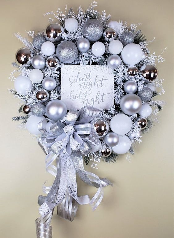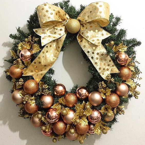 Ako kod kuće imate puno božićnih kuglica koje ne koristite za ukrašavanje božićnog drvca, s lakoćom možete ukrasiti božićni vijenac za vrata. Kuglice možete jako gusto pričvrstiti na vijenac, tako da vam drugi ukrasi neće trebati. Takav božićni vijenac za vrata lijepo će se pokazati ako na njega pričvrstite ogromnu mašnu.