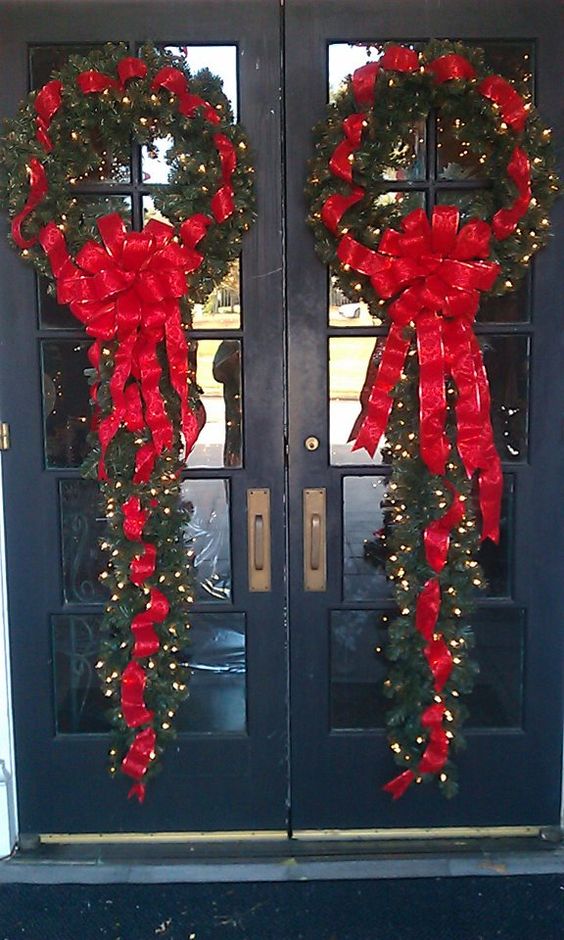 Odličan savjet je pričvrstiti girlandu za vijenac, koji će visjeti uz vrata, a zatim pričvrstiti debelu crvenu vrpcu na vijenac i girlandu. Takav crveni božićni vijenac na vratima bit će zajamčeno neizostavan.