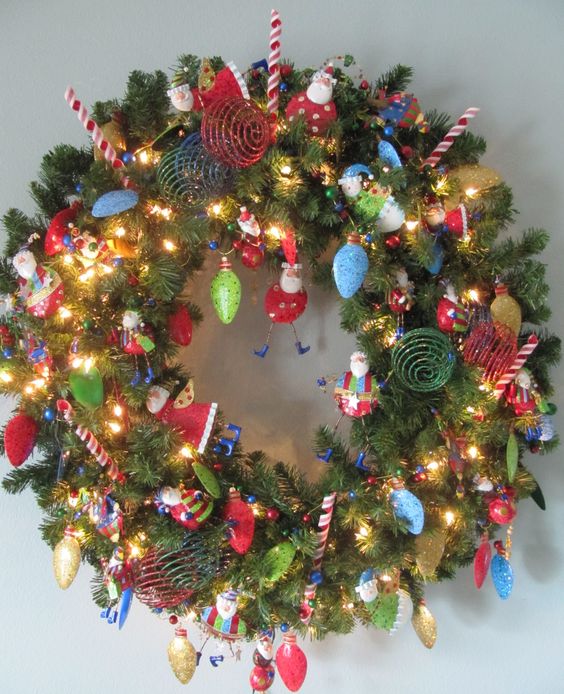 Razigrani i šareni božićni vijenac možete jednostavno izraditi uz pomoć raznih kuglica u boji, figurica, šarenih mašnica, ukrasa drvca, medenjaka, lizalica ili cvijeća. Glavna stvar je igrati se bojama. Od jednostavnog, klasičnog zelenog ili snježnog vijenca, sa raznim ukrasima, možete stvoriti najveseliji božićni vijenac na vratima za kojim će se svi okrenuti.