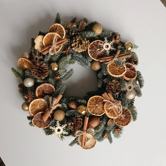 Zaboravite na šarene božićne kuglice i ukrase. Napravite božićni vijenac za vrata ili stol od raznih plodova prirode. Na zeleni božićni vijenac jednostavno pričvrstite šišarke, sušeno voće, orašaste plodove ili drvene ukrase. Ako vam je takav vijenac previše dosadan, među takve prirodne ukrase možete pričvrstiti i nekoliko klasičnih božićnih kuglica u nježnim ili zemljanim nijansama. Takav božićni vijenac na vratima ili stolu zajamčeno će vam donijeti djelić prirode.