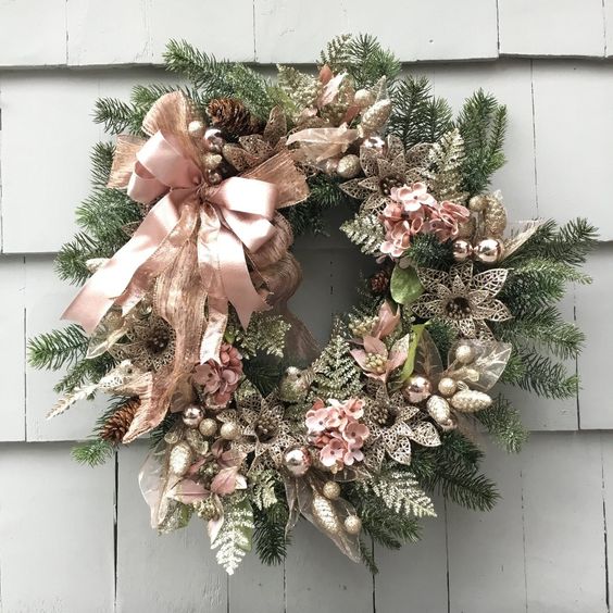Nježna, ružičasta boja postaje sve popularnija tijekom Božića. Ružičasti božićni ukrasi lijepo će se vidjeti i na bijelim, snježnim božićnim vijencima i na klasičnim zelenim vjencima. Jednostavno pričvrstite ružičaste božićne ukrase na čisti božićni vijenac. Možete odabrati ružičaste kuglice, cvijeće ili vrpce, ali i razne ukrase u obliku ptica, srca ili anđela. Ružičaste ukrase preporučamo kombinirati s ukrasima srebrne, bijele, ali i zlatne boje.