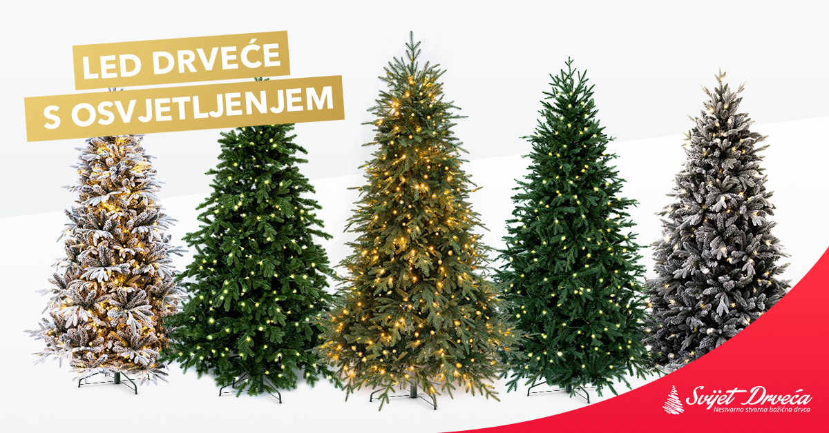 Na tržištu ćete pronaći trendovska 3D drvca s LED božićnom rasvjetom, kao i klasična PVC božićna drvca s LED lampicama. Također možete birati između bijelih i snijegom prekrivenih drvca s lampicama ili tradicionalnog zelenila. To samo ovisi o vašim željama i financijskom proračunu.