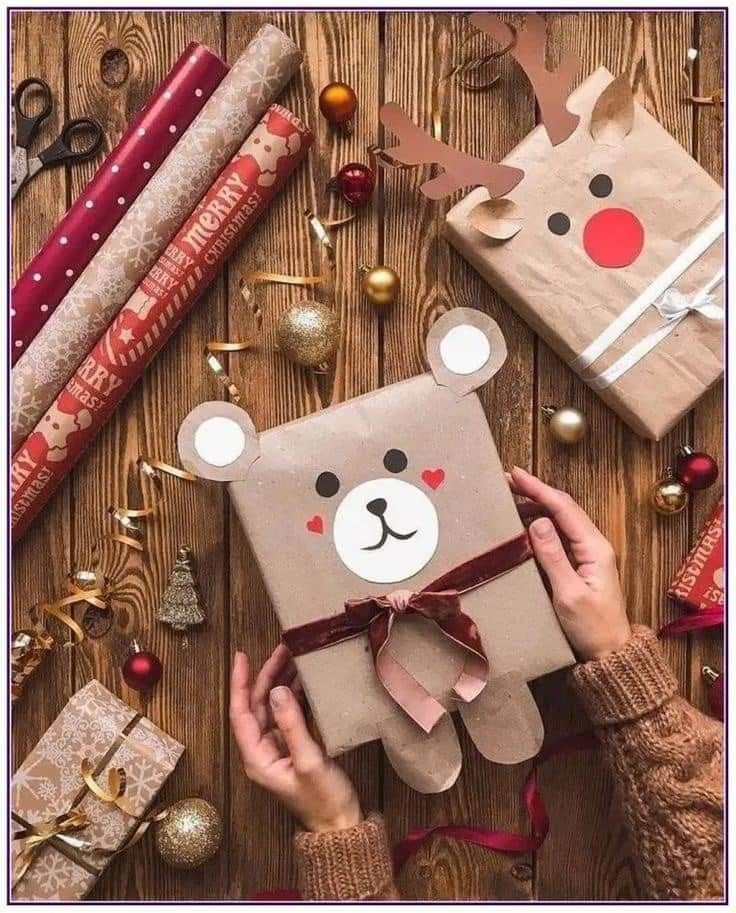 Pri pakiranju poklona za djecu ne smiju nedostajati šareni motivi životinja, Djeda Mraza, snjegovića i drugih božićnih uzoraka. Ako se osjećate dovoljno hrabro, možete ih sami nacrtati ili obojiti. Ako nemate talenta za crtanje, možete koristiti božićne naljepnice.