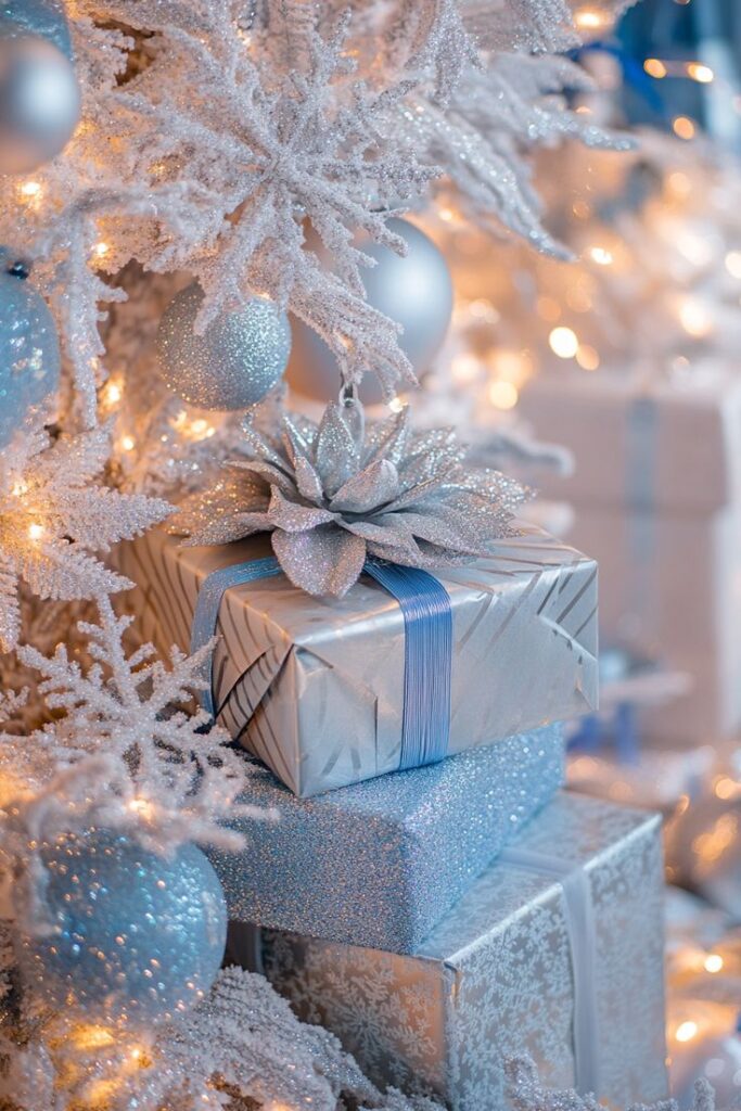 Zamotani darovi prekrasno dolaze do izražaja ispod realističnog 3D božićnog drvca. Ako imate bijelo ili snježno drvce, paketići u zlatnoj, srebrnoj ili prirodnoj paleti stvorit će savršen vizualni kontrast.