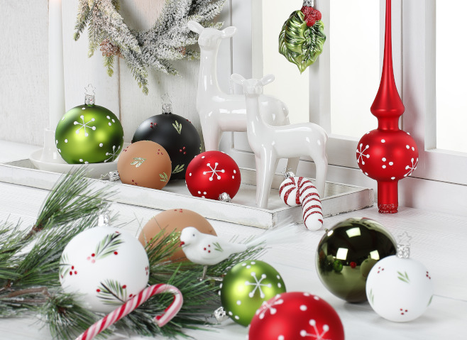 Crvene božićne kuglice u kombinaciji sa zelenim božićnim ukrasima i bijelim dodacima. Čini se da se ljubitelji tradicionalnog Božića teško odriču ovih boja. No, zahvaljujući njihovoj bezvremenosti, ovim uobičajenim božićnim bojama nećete ništa pokvariti. Ali zašto ne nadopuniti takve tradicionalne božićne ukrase elegantnim crnim božićnim kuglicama ili smeđim božićnim ukrasima? Takva kombinacija boja zajamčeno će oživjeti vaše božićne boje. Svoje božićne ukrase možete usavršiti, primjerice, elegantnim likovima Djeda Božićnjaka u tradicionalnim, crvenim i bijelim nijansama.