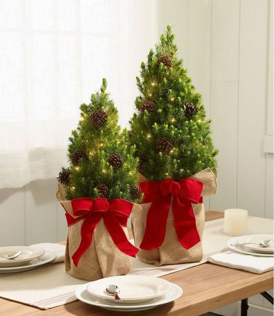 Mali umjetni borovi lijepo će se pokazati u raznim saksijama, drvenim kutijama ili pletenim košarama. Izgledat će sa ukusom, elegantno i sa stilom, ali prosudite sami.