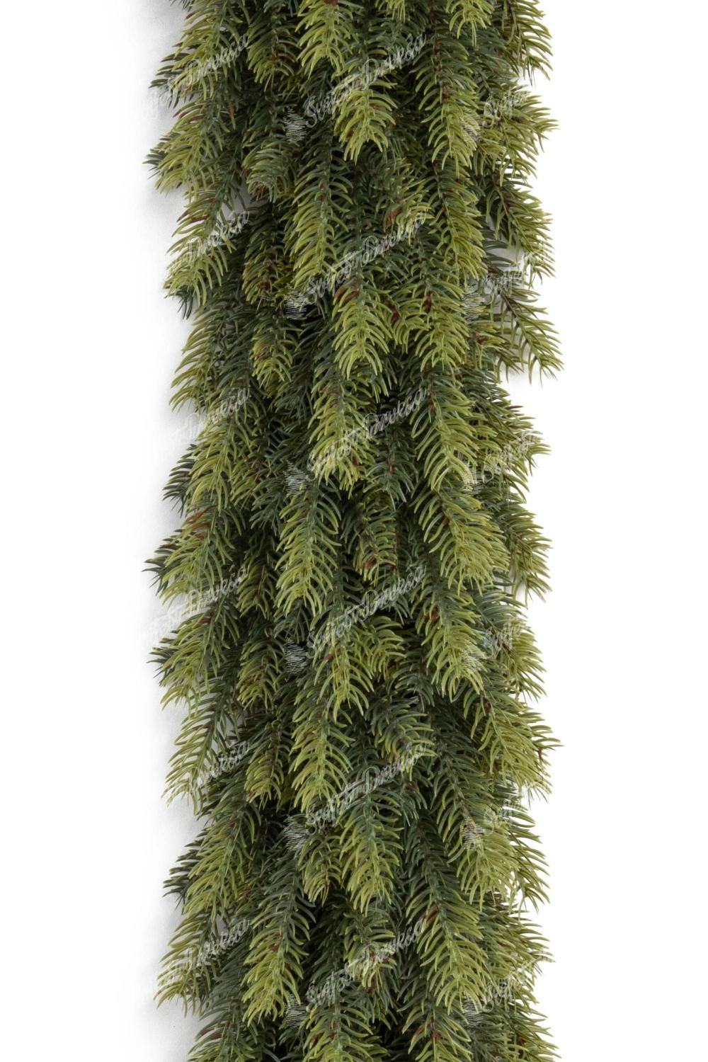 Moderni božićna girlanda 3D Robusna Smreka, sastoji se od 3D igala u dvije nijanse zelene. Cijela girlanda sadrži samo 3D meke igle, koje savršeno oponašaju živu granu i tako u vaš dom unose komadić prirode koji će trajati desetljećima.