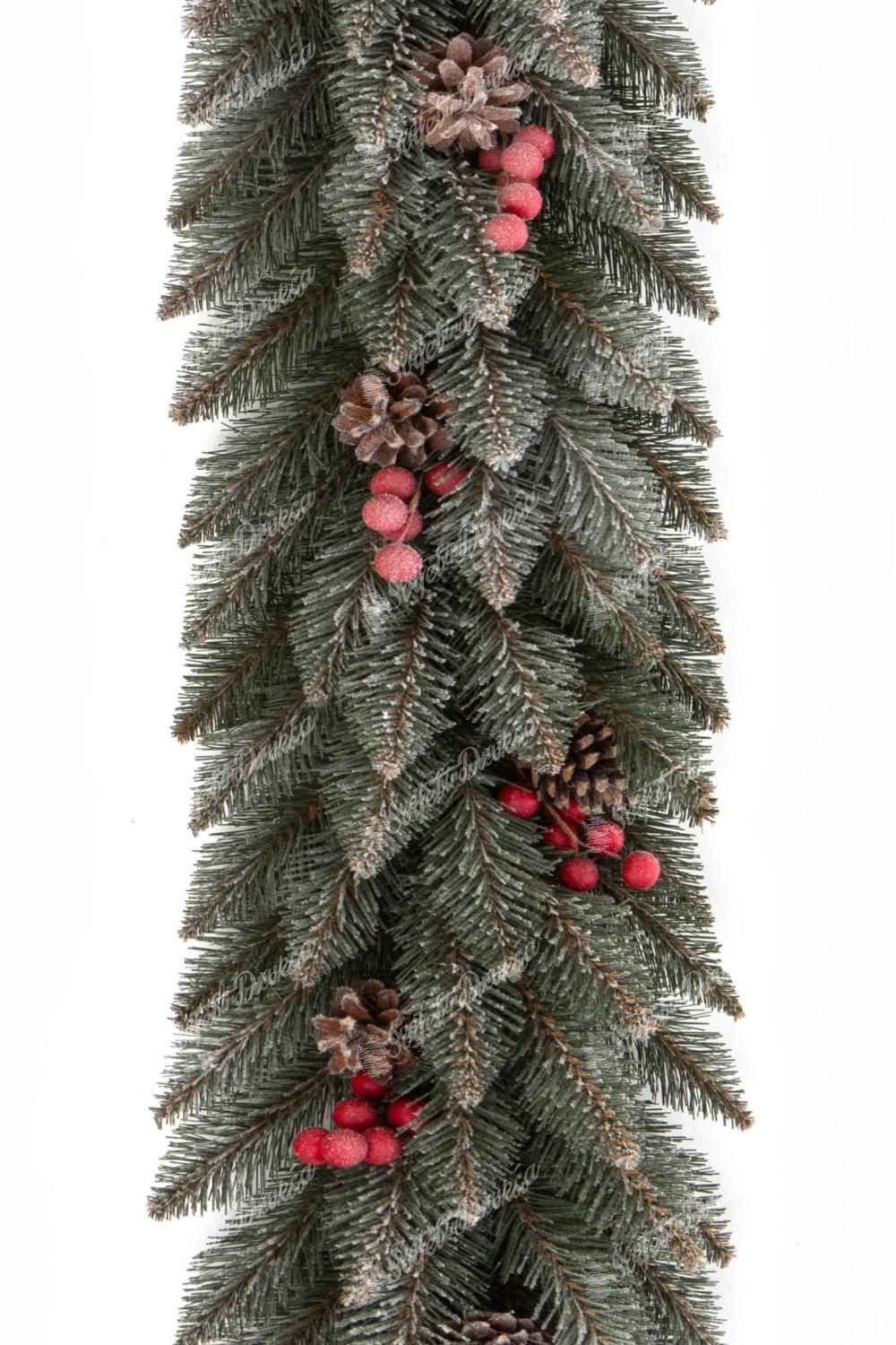 Ova ekskluzivna tirkizno-zelena božićna girlanda okićena je bijelim čupercima nalik kristalima leda. Girlanda je veličine 1m i može se povezati, tako da možete spojiti 3 komada zajedno po potrebi. Takva božićna girlanda prikladna e kao ukras za stol, ormarić ili vrata.