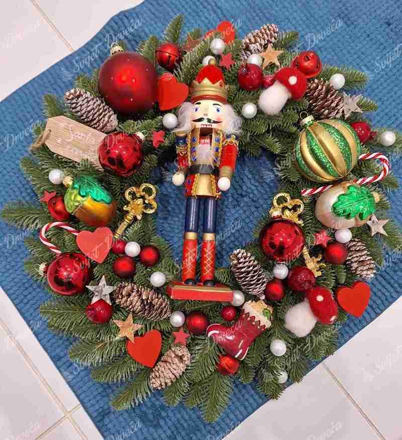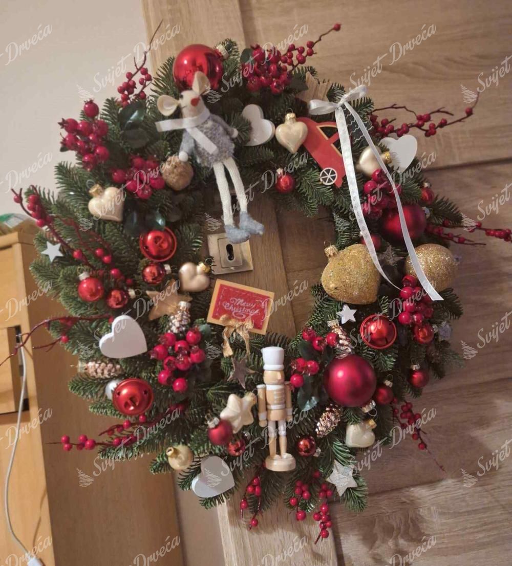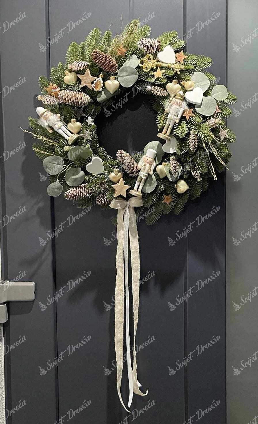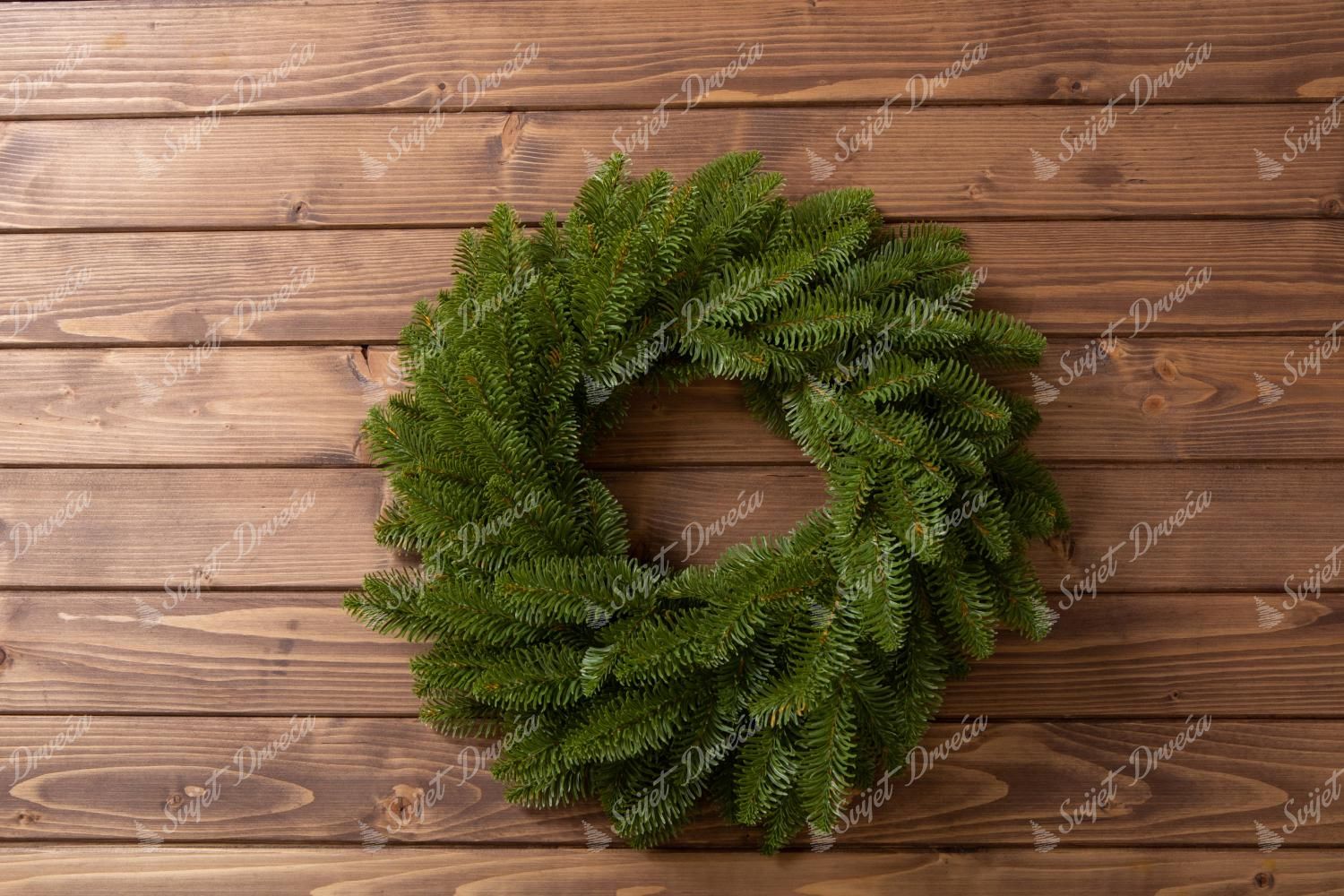 Vijenac se dostavlja nerastavljen. Nakon temeljite raspodjele grančica doseže promjer 50 cm. Božićni vijenac pogodan je kao ukras za stol, vrata, a može vam uljepšati i zid ili kamin.