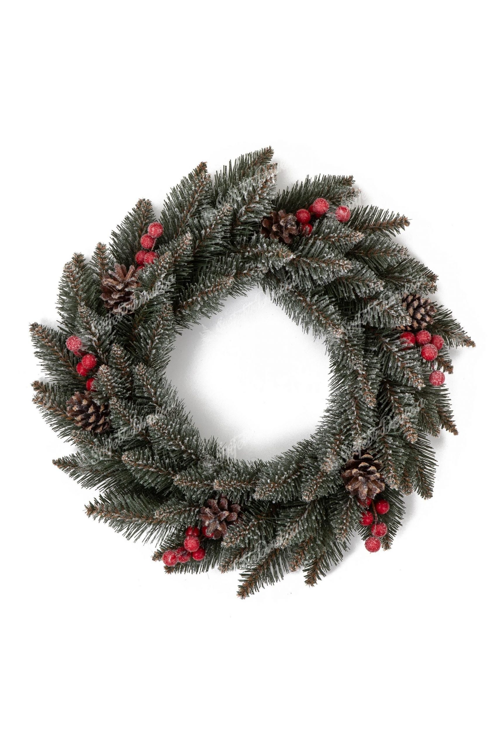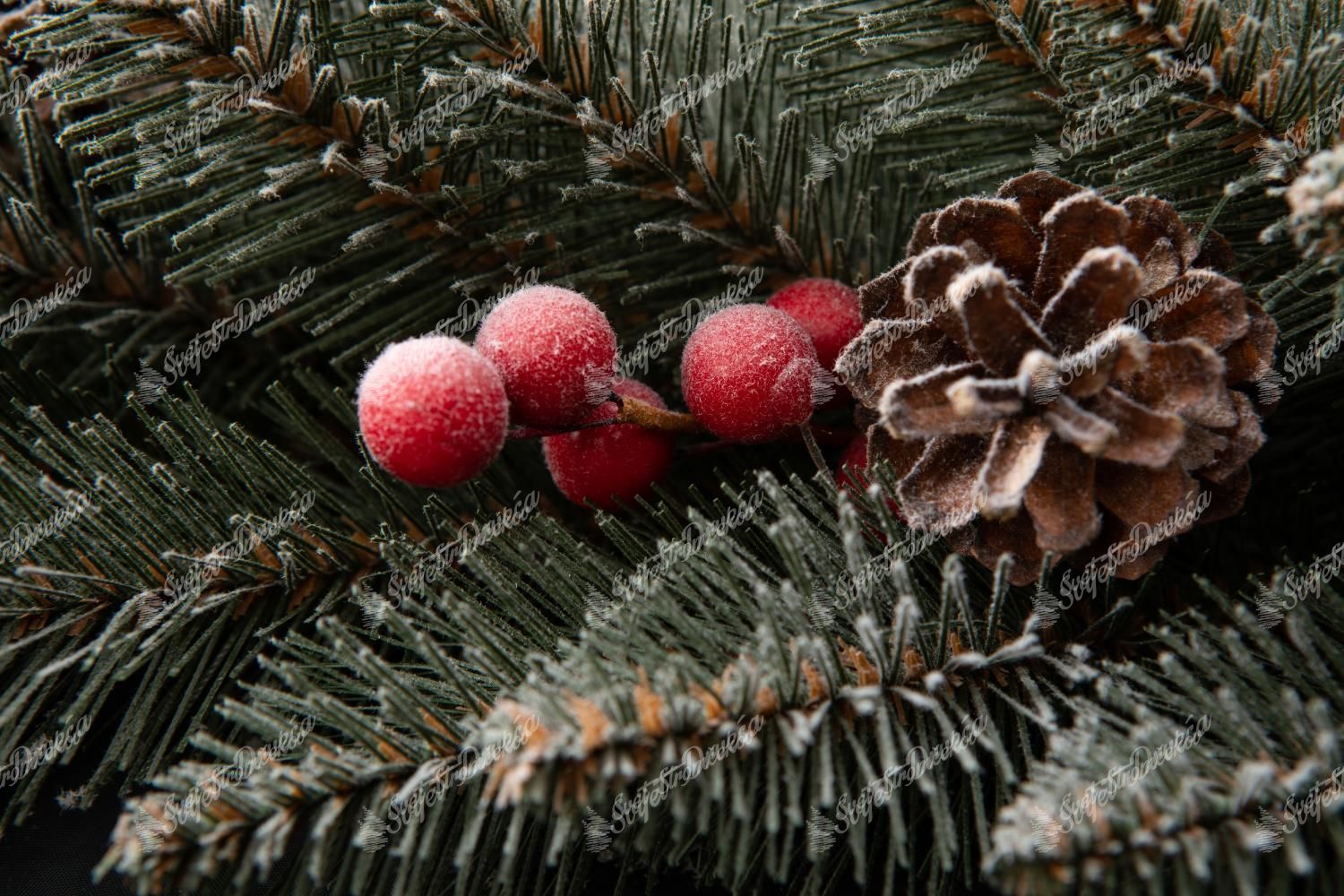 Božićni vijenac kristalne smreke jedinstveni je i ekskluzivni vijenac koji ćete pronaći samo kod nas. Tirkizno zelene PVC grančice posute su malim bijelim čupercima nalik kristalima leda. Ovaj vijenac nadopunjuju crvene bobice i prave šišarke.