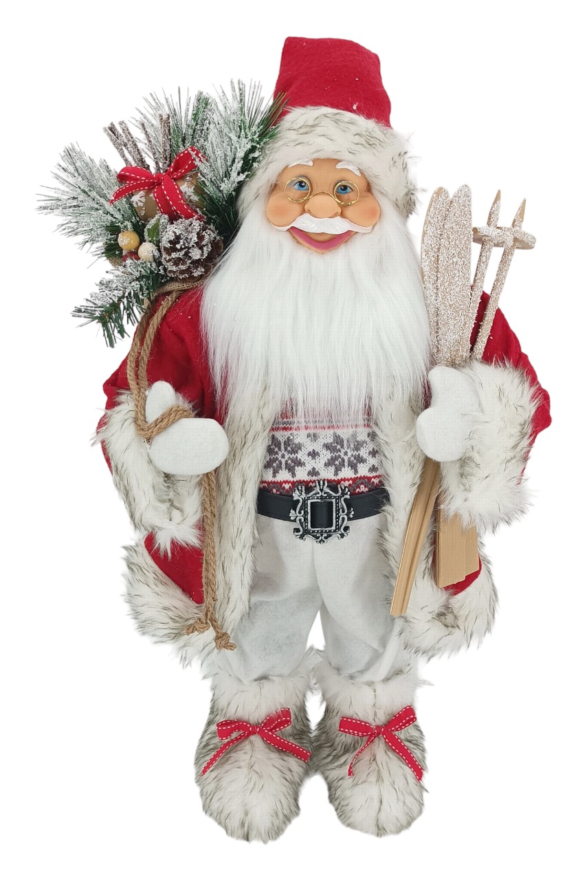 Tradicionalna Crveno-Bijela figura Santa Clausa pravi je ukras za svaki dom. Santa Claus nosi tradicionalni crveni kaput i šešir s bogatim bijelim krznenim obrubom. Također nosi bijele hlače i bijele krznene čizme s crvenom mašnom.