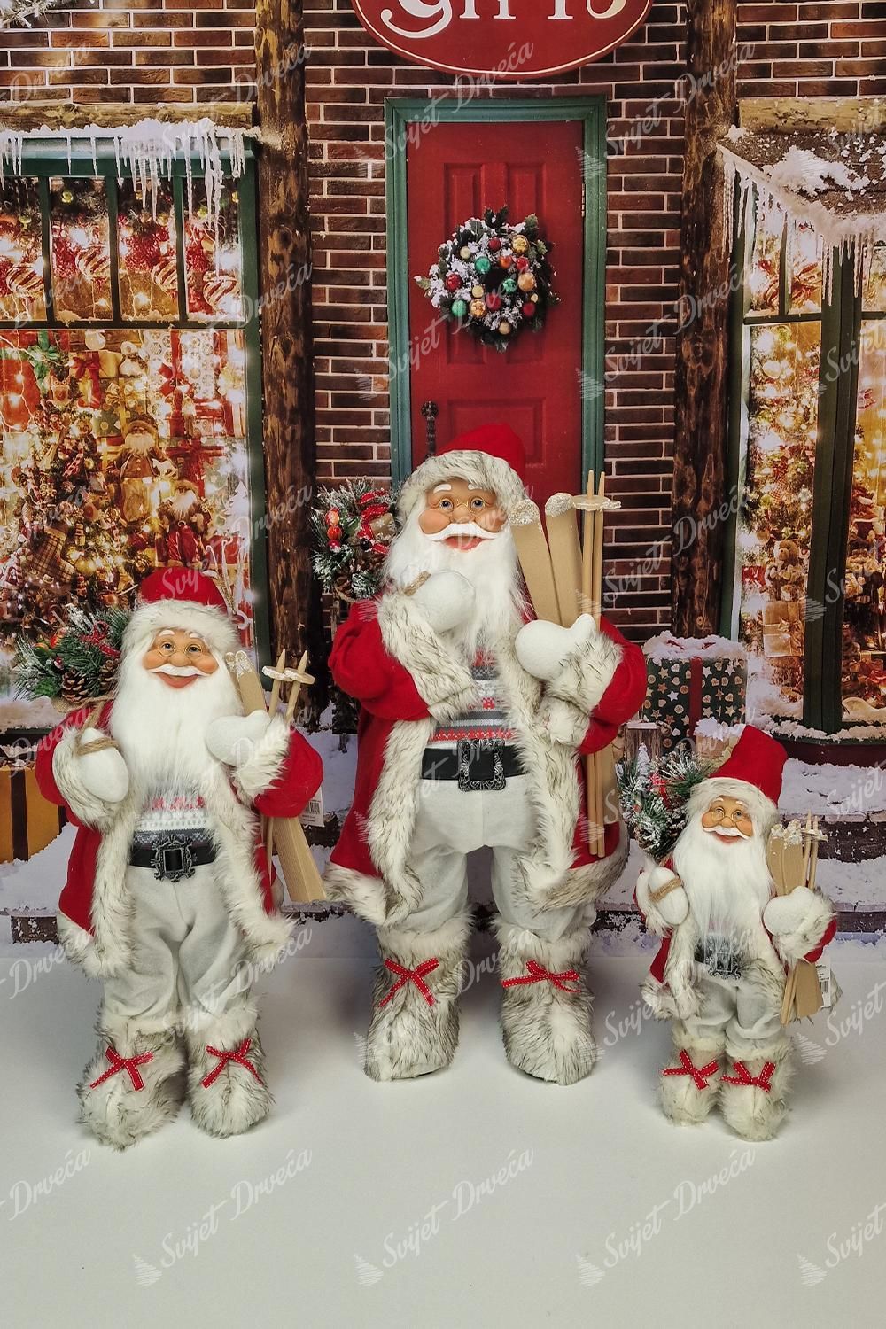 Tradicionalni crveno-bijeli božićni Djed Mraz dostupan je u veličinama 40 cm, 60 cm i 80 cm.