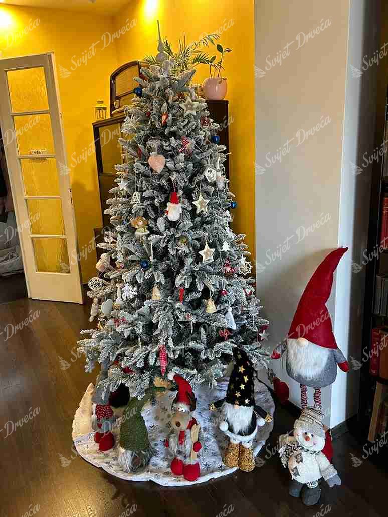 Gusto snijegom prekriveno božićno drvce, 3D Alabaster Jela, raskošno je drvce koje svojim snježnim, zimskim izgledom dočarava savršenu, bajkovitu božićnu atmosferu u svakoj prostoriji. Ovo drvce prekriveno snijegom ima duge zelene 3D grane jele koje nježno vise ispod debelog sloja umjetnog snijega, dajući drvetu jedinstven izgled.
