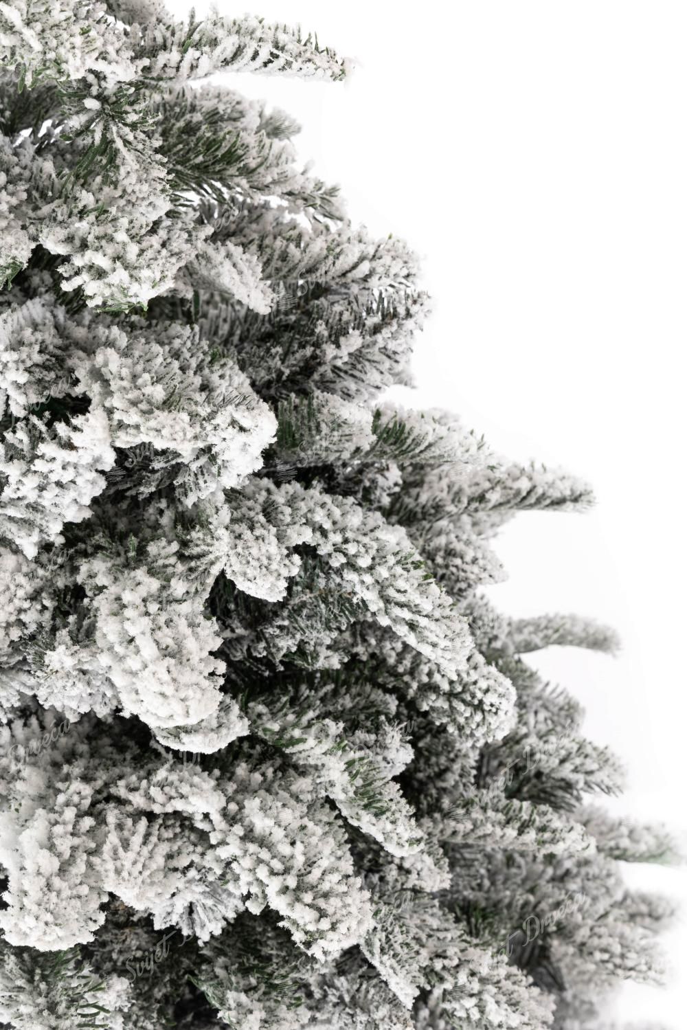 Gusto snijegom prekriveno božićno drvce, 3D Alabaster Jela, raskošno je drvce koje svojim snježnim, zimskim izgledom dočarava savršenu, bajkovitu božićnu atmosferu u svakoj prostoriji. Ovo drvce prekriveno snijegom ima duge zelene 3D grane jele koje nježno vise ispod debelog sloja umjetnog snijega, dajući drvetu jedinstven izgled.