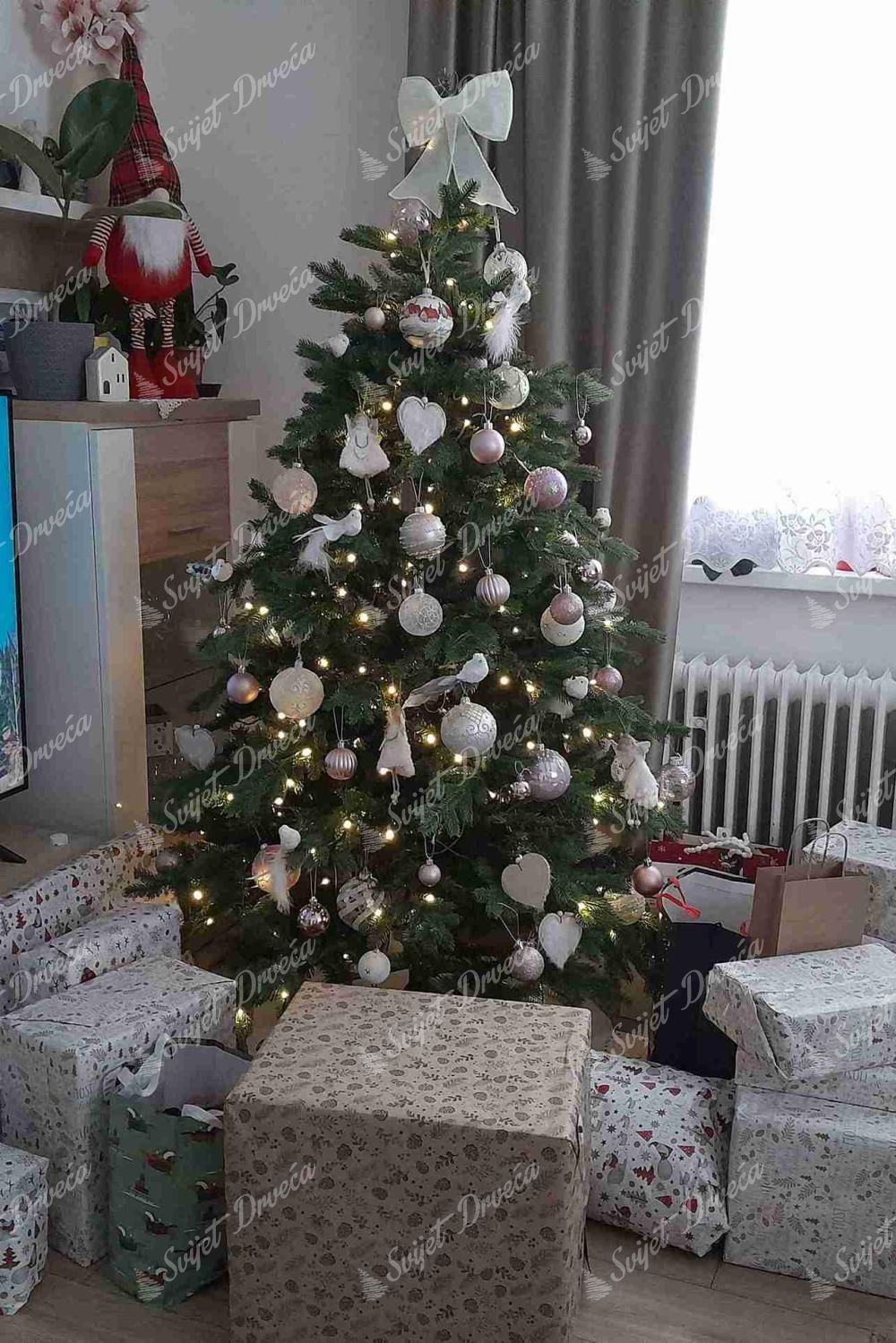 Stablo ima ugrađenu (uvijenu) toplo bijelu LED rasvjetu. Zahvaljujući tome više ne morate beskrajno gubiti vrijeme vješajući vlastitu rasvjetu na drvo. Broj LED svjetala ovisi o veličini stabla.