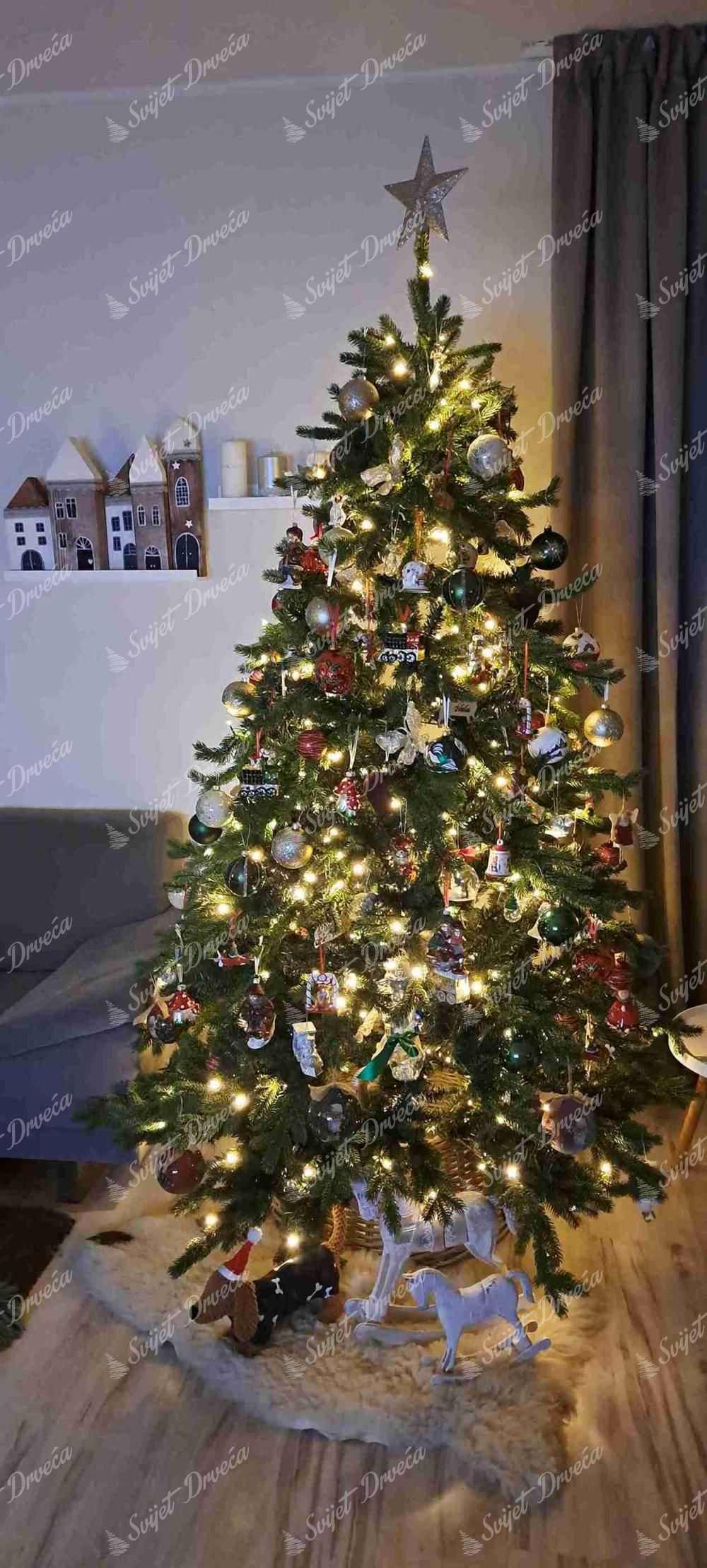 Stablo ima ugrađenu (uvijenu) toplo bijelu LED rasvjetu. Zahvaljujući tome više ne morate beskrajno gubiti vrijeme vješajući vlastitu rasvjetu na drvo. Broj LED svjetala ovisi o veličini stabla.