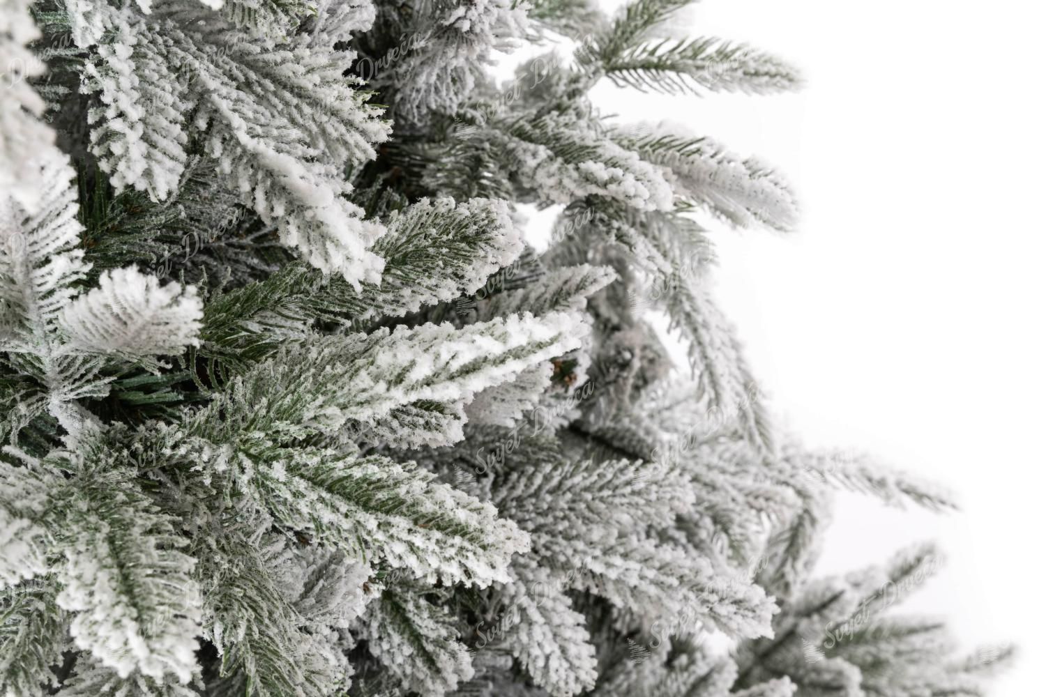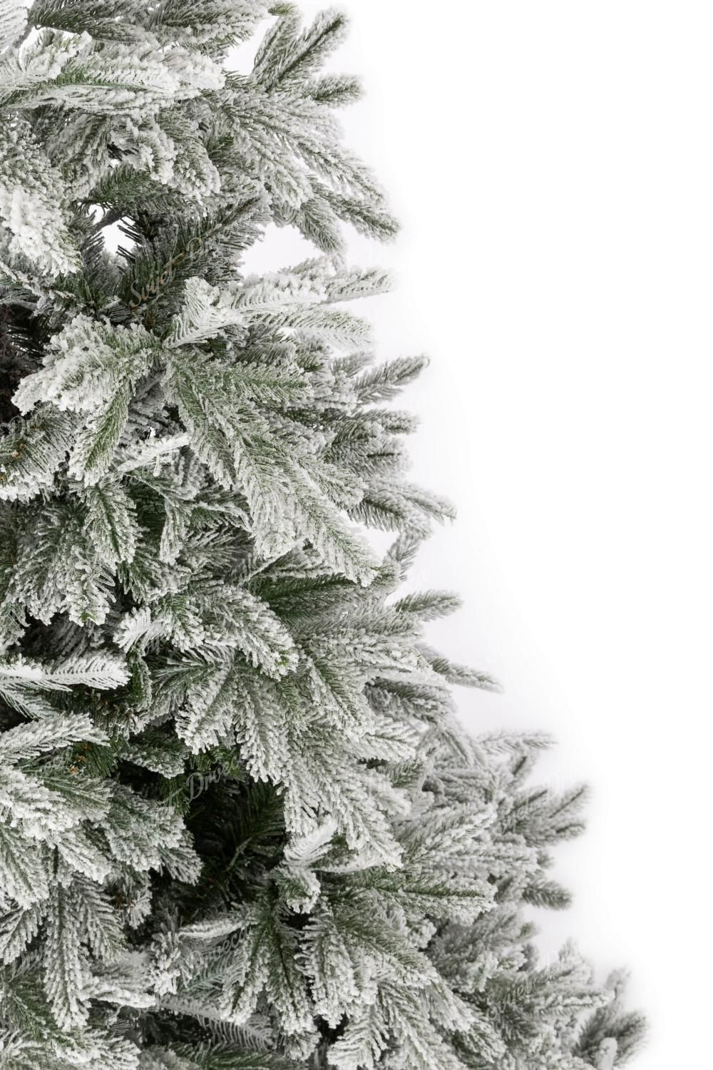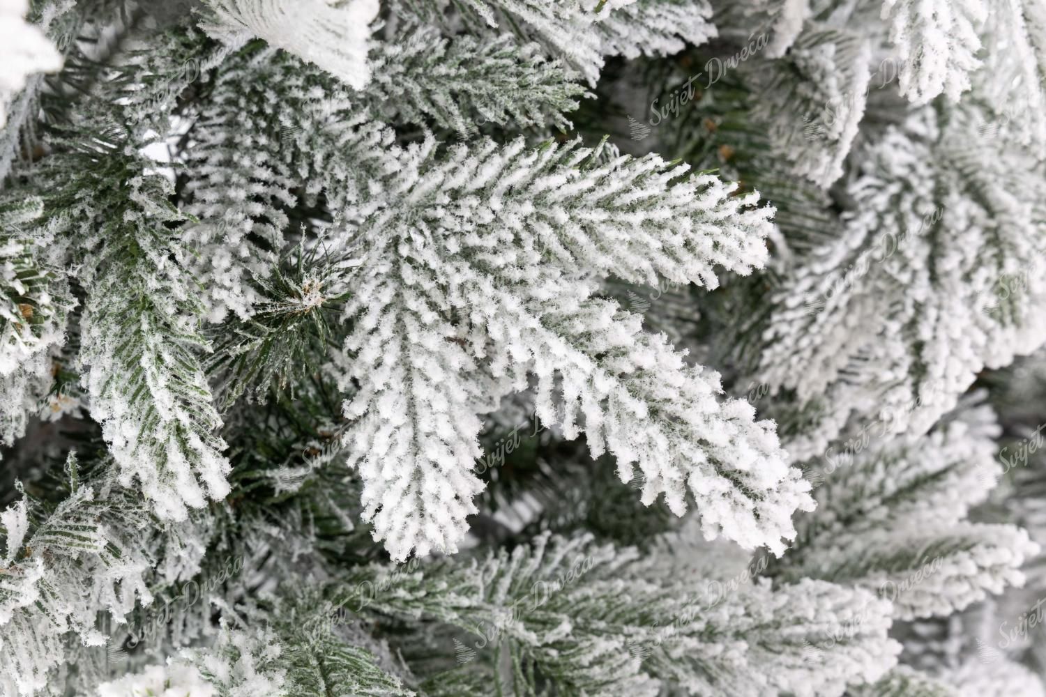 Umjetno božićno drvce realističnu 3D Grenlandsku smreku karakteriziraju visokokvalitetne zelene iglice smreke koje su prekrivene slojem umjetnog snijega. 3D grančice po cijelom obodu drvca nadopunjuju klasične PVC grančice koje su također gusto prekrivene snijegom.