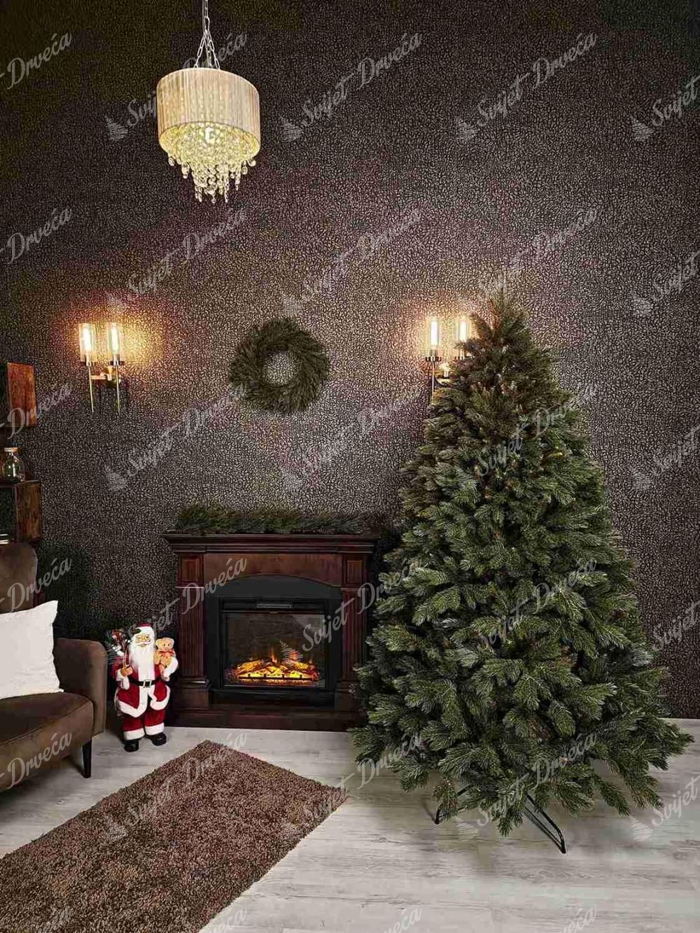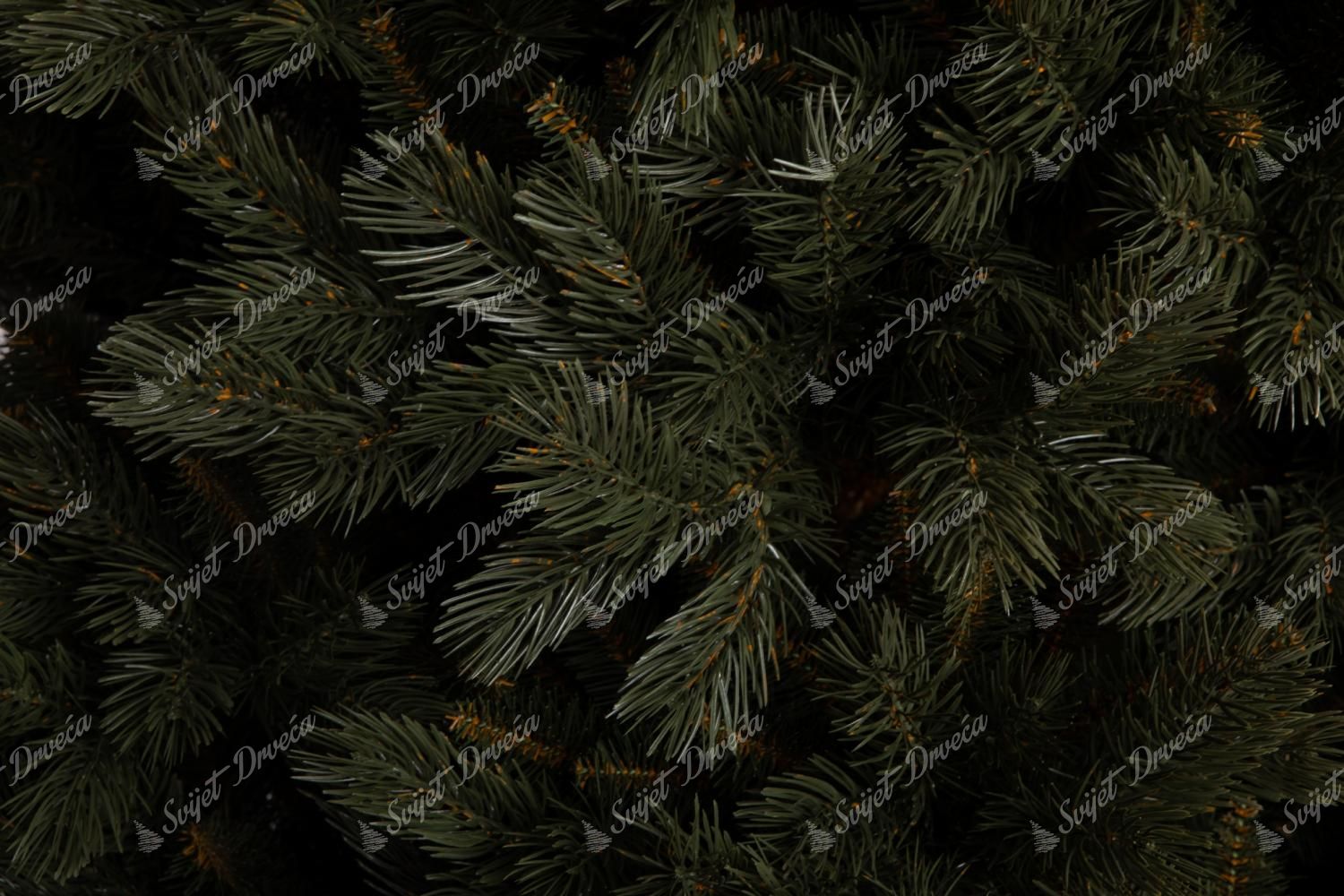 3D umjetno božićno drvce, visina 240cm, širina 158cm, tamnozelene borove 3D iglice, tip igle 3D (PE) + PVC, dizajn – ekstra gusto, metalni stalak, dužina vrha – 20 cm, broj dijelova – 3