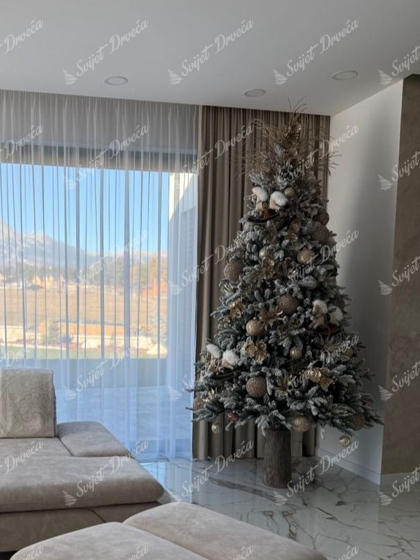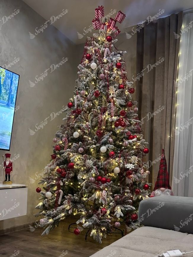 3D igla upotpunjena je klasičnom PVC iglom po cijelom obodu stabla koje je gusto prekriveno snijegom. Najmoderniji sustav nanošenja umjetnog snijega na drvo garantira da snijeg neće otpasti.