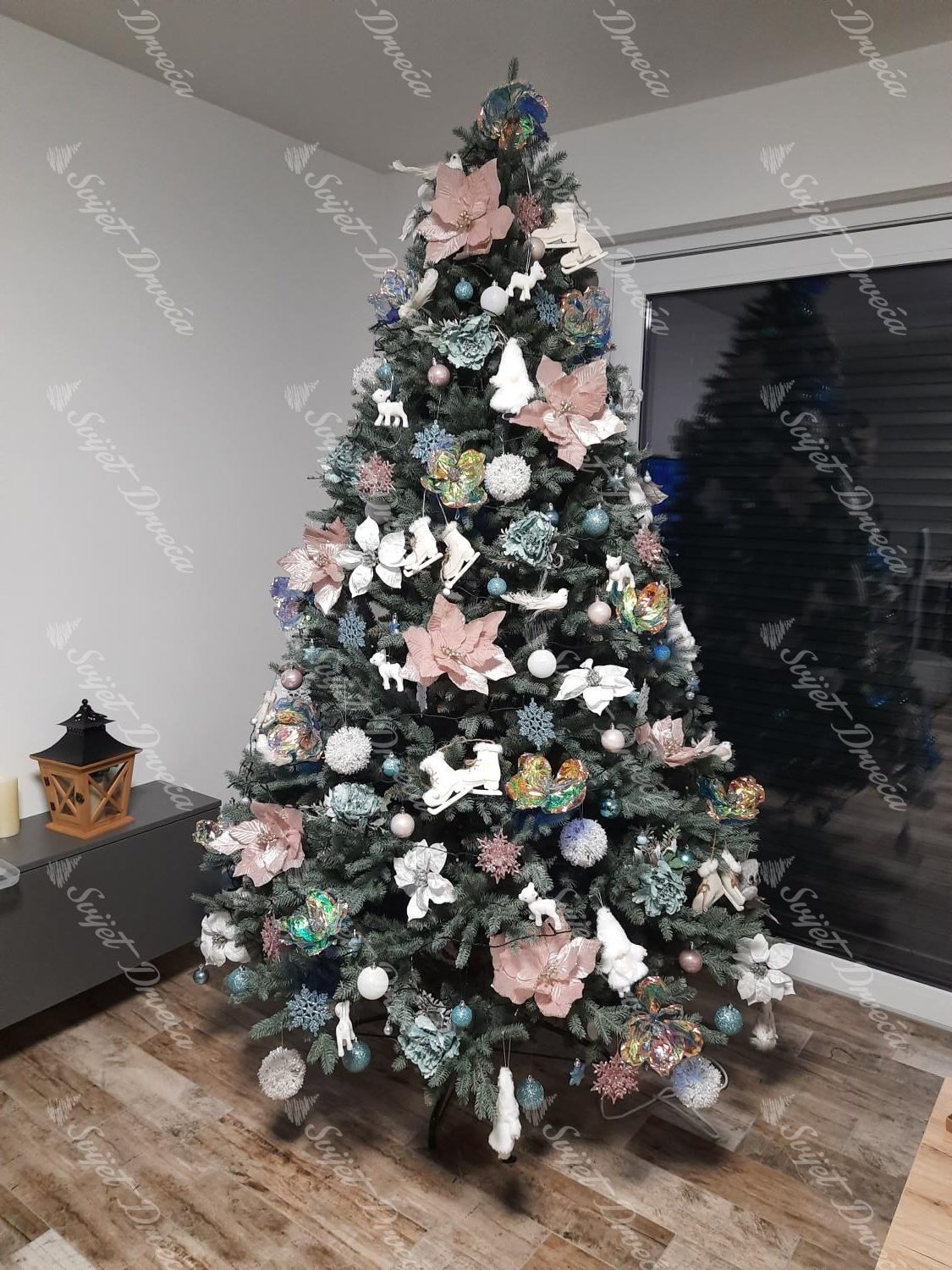Umjetno božićno drvce 3D ledena smreka osvojit će vas jedinstvenom bojom i oblikom. Zahvaljujući ledeno-srebrnoj boji grančica i njihovom prirodnom položaju drvo je originalno i jedinstveno. 3D grančice nadopunjuju se klasičnim PVC grančicama u sredini stabla, što osigurava gustoću stabla.