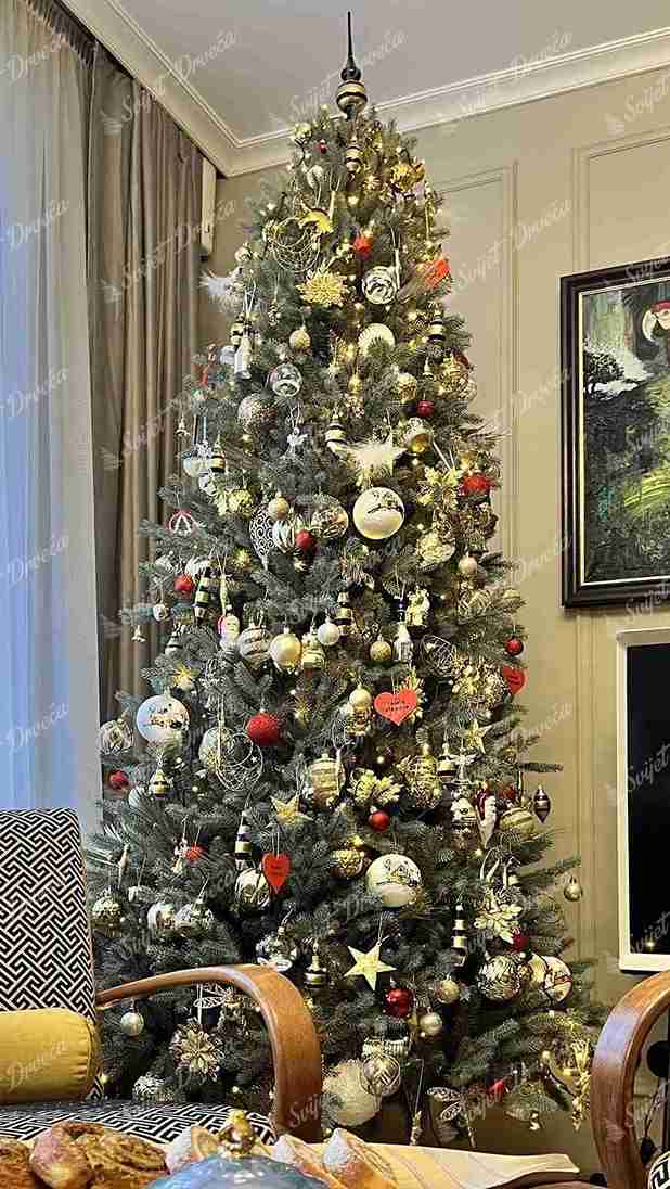 3D umjetno božićno drvce, visina 240 cm, širina 145 cm, igla 3D (PE) + PVC, smrekove 3D iglice ekskluzivne zelene boje, dizajn – ekstra gusti, duljina vrha 20 cm, metalni stalak, broj dijelova – 3