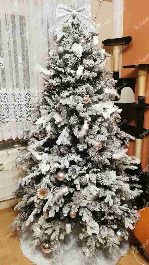 Gusto snijegom prekriveno umjetno božićno drvce 3D Polarna Smreka ima jedinstven zimski izgled koji dočarava savršeno snježni Božić u svakom domu. 3D grančice po cijelom obodu drvca nadopunjuju klasične PVC grančice koje su također gusto prekrivene snijegom.