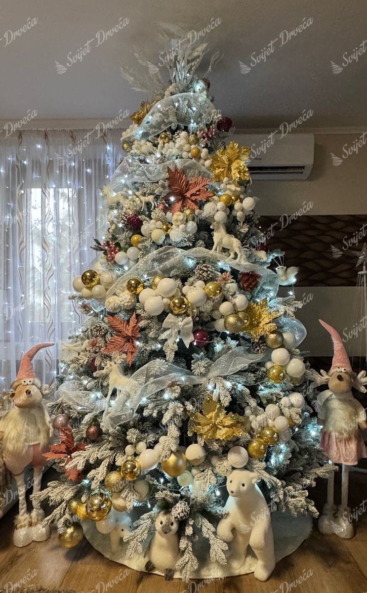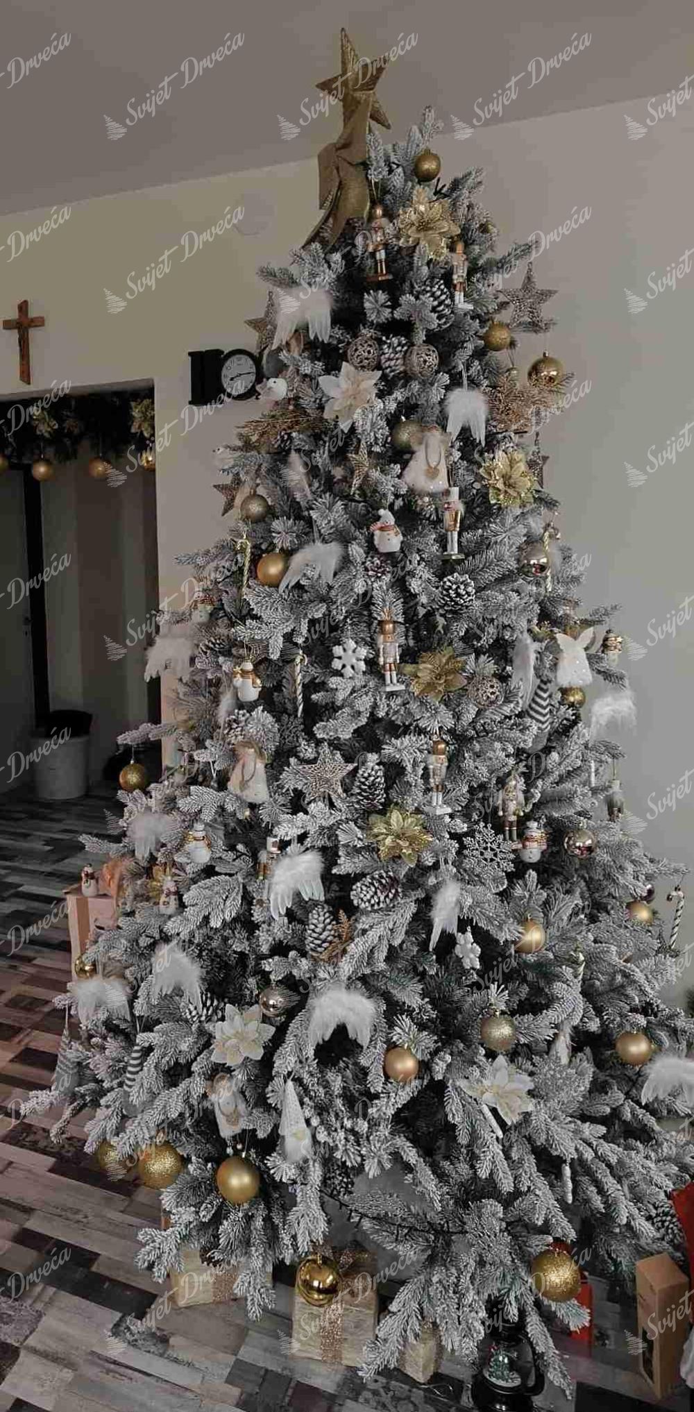Gusto snijegom prekriveno umjetno božićno drvce 3D Polarna Smreka ima jedinstven zimski izgled koji dočarava savršeno snježni Božić u svakom domu. 3D grančice po cijelom obodu drvca nadopunjuju klasične PVC grančice koje su također gusto prekrivene snijegom.