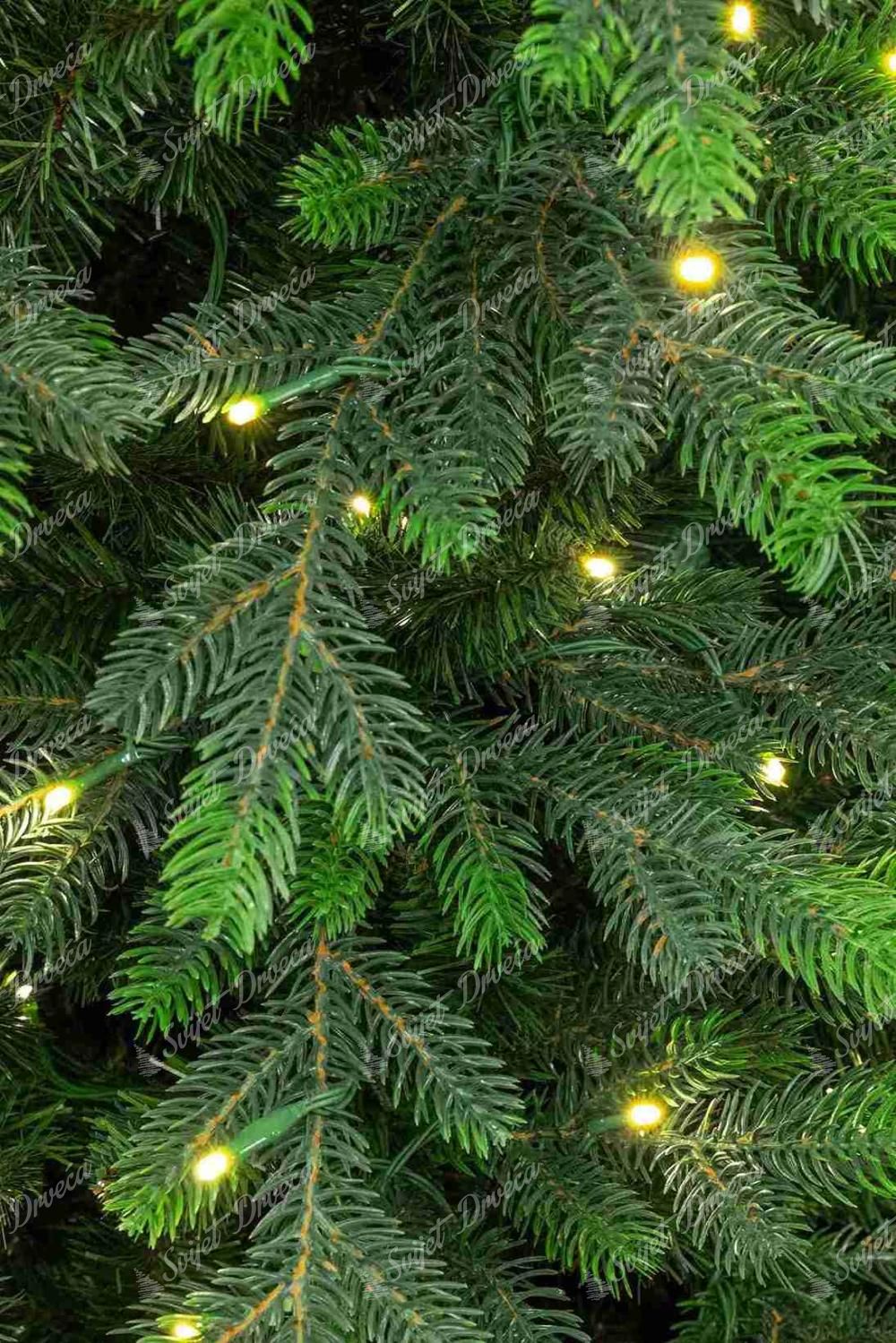 Drvce ima prethodno namotanu LED rasvjetu u toploj bijeloj sjeni s 8 funkcija osvjetljenja izravno u granama. Time se osigurava ravnomjerna raspodjela žarulja i stoga je izvrstan izbor za one koji žele stvoriti prekrasan božićni ugođaj bez gubljenja vremena.