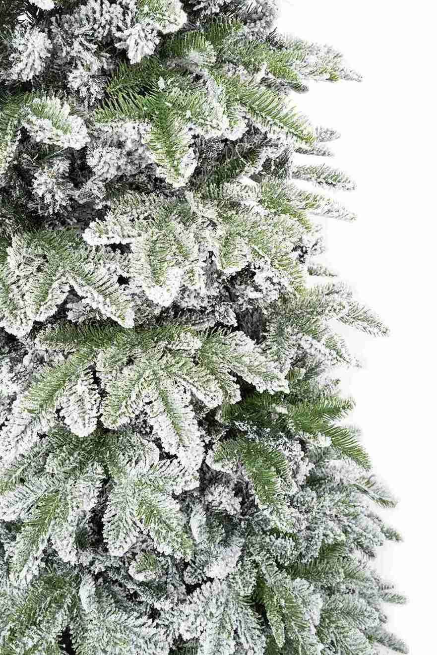 Moderno božićno drvce uskog dizajna, 3D Snježna Pirenejska Jela je novost u sezoni 2024. koju stvaraju mekane i nepravilne snježne grančice koje imitiraju svježe zasnježeno drvce u prirodi. Unutrašnjost jelke dopunjena je snježnim klasičnim PVC grančicama koje joj daju gust izgled.
