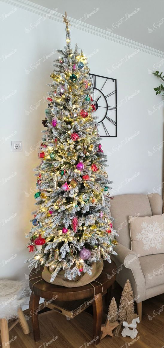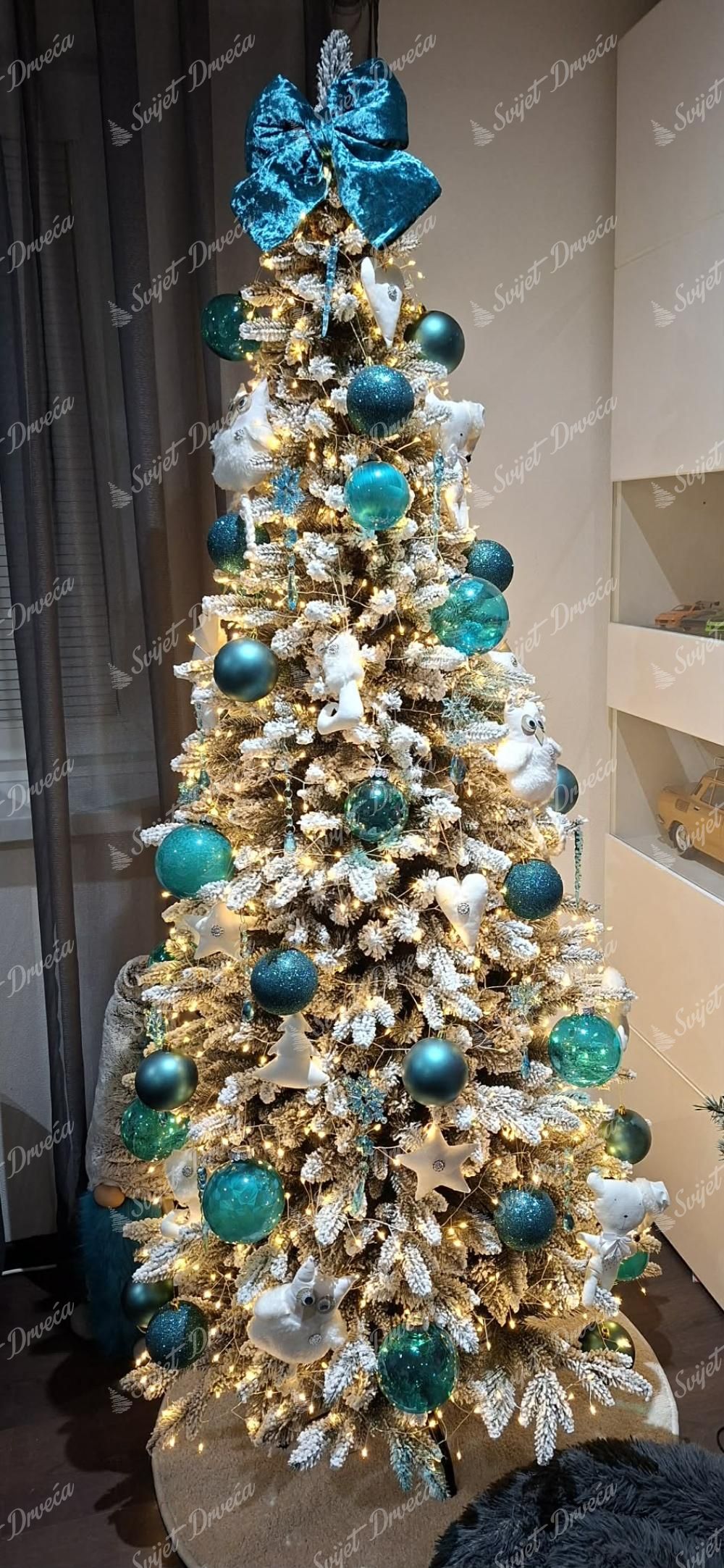 Njegove bijelo-zelene grančice možda očaraju svakoga tko čezne za kraljevskim ledenim Božićem. 3D iglice po cijelom obodu drveta nadopunjuju klasične PVC iglice koje su gusto prekrivene snijegom. Najsuvremeniji sustav nanošenja umjetnog snijega na drvo garantira da snijeg ne pada.