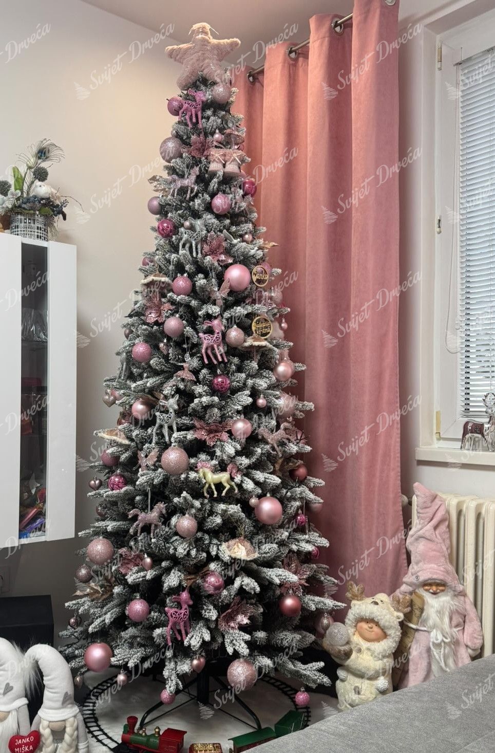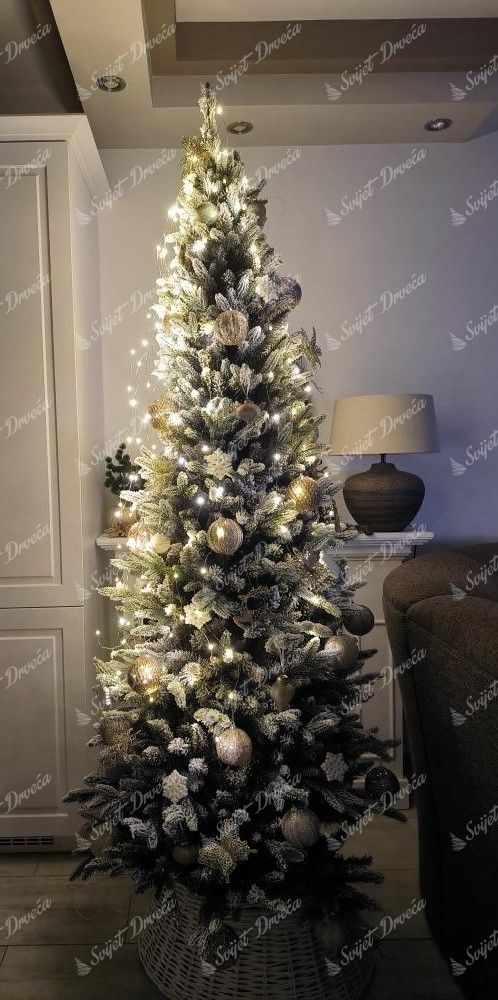 Njegove bijelo-zelene grančice možda očaraju svakoga tko čezne za kraljevskim ledenim Božićem. 3D iglice po cijelom obodu drveta nadopunjuju klasične PVC iglice koje su gusto prekrivene snijegom. Najsuvremeniji sustav nanošenja umjetnog snijega na drvo garantira da snijeg ne pada. Drvo ima čvrstu konstrukciju i metalni stalak koji je dio paketa.