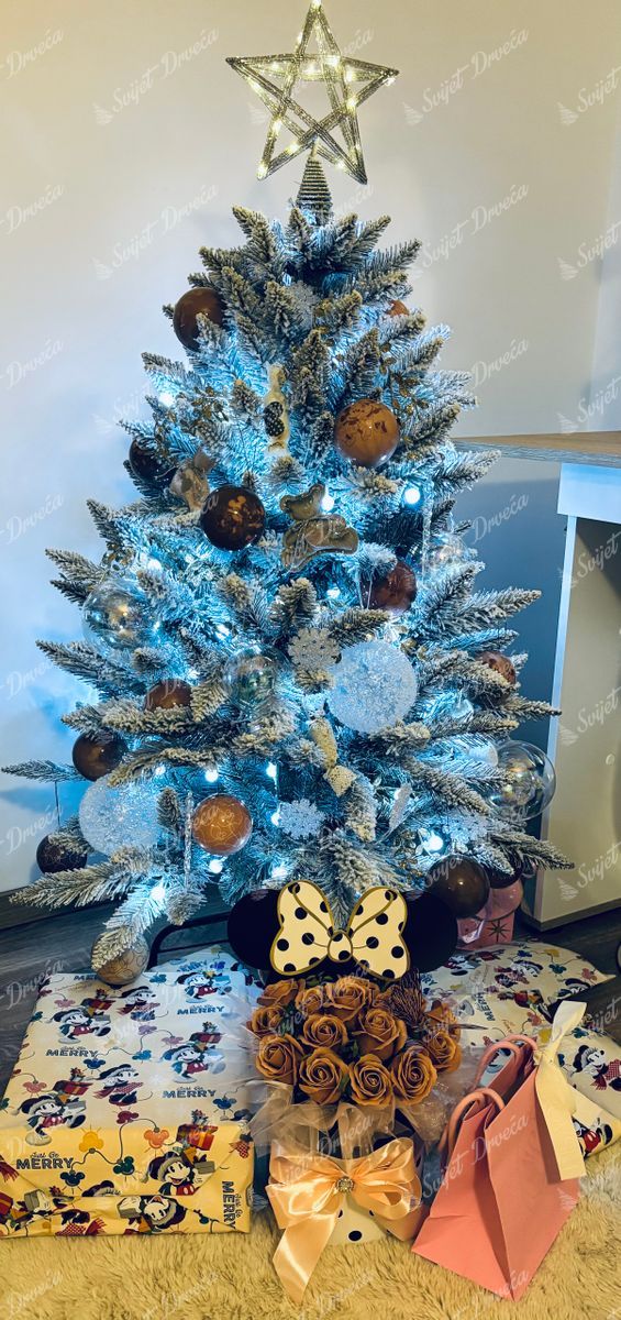 Moderno, snijegom prekriveno božićno drvce, Bijela Smreka, nezaobilazna je NOVINA za sezonu 2022. Ovo bijelo božićno drvce karakteriziraju visokokvalitetne zelene smrekove grančice koje nose debeli sloj umjetnog snijega.
