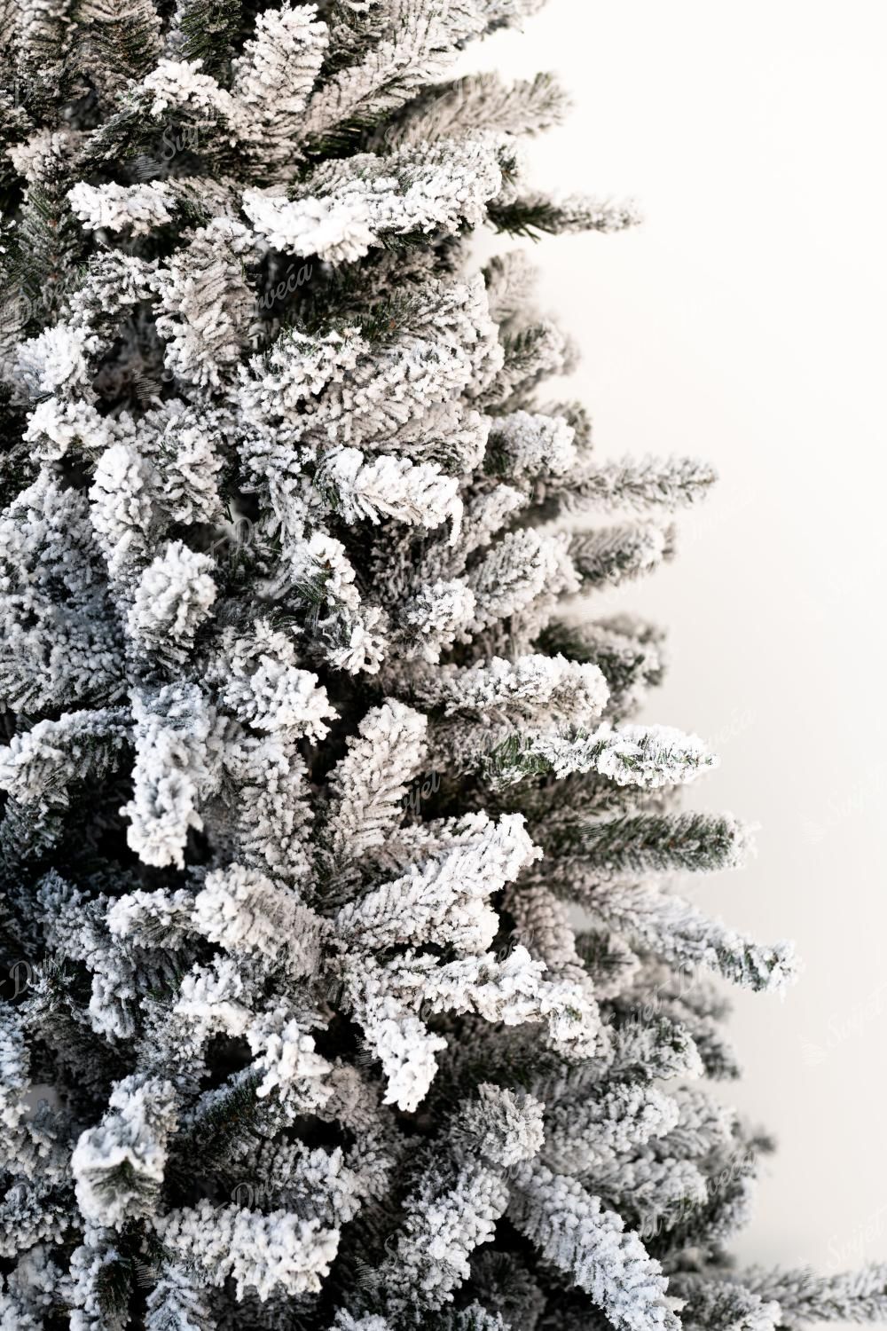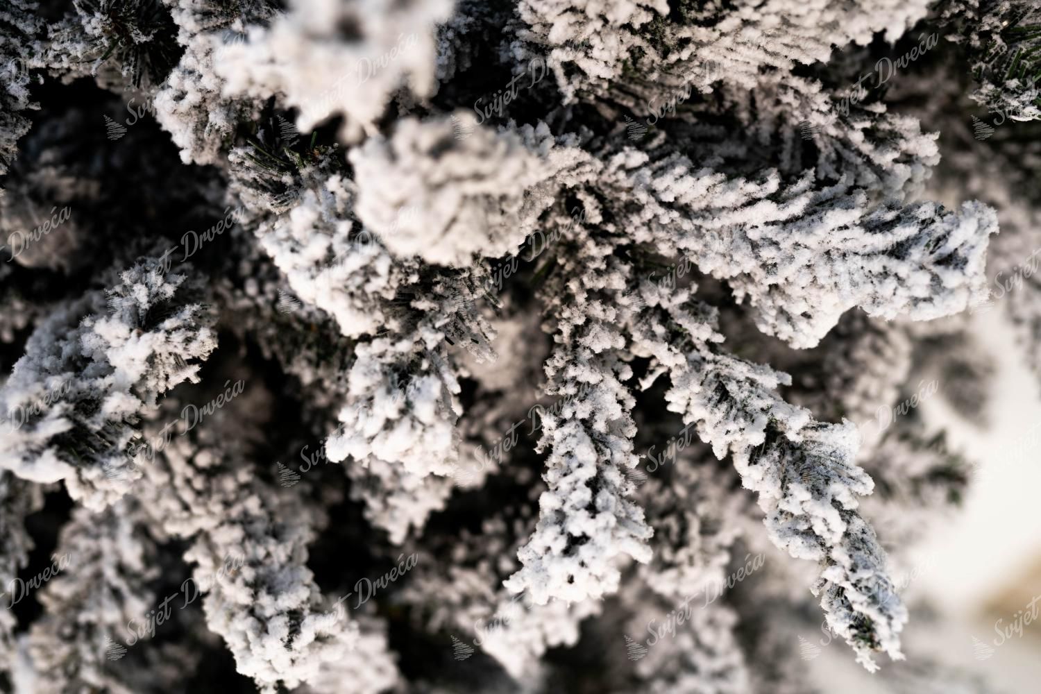 Uz pomoć najnovijih tehnologija, slojevi umjetnog snijega koji ne pada sa drveta postupno je nanet na cijelo drvce. Središte drvceta čine tamnozelene iglice, dok su krajevi grančica gusto snježni. Tijekom početnog rasklapanja grančica oslobađaju se neuhvaćeni dijelovi snijega.