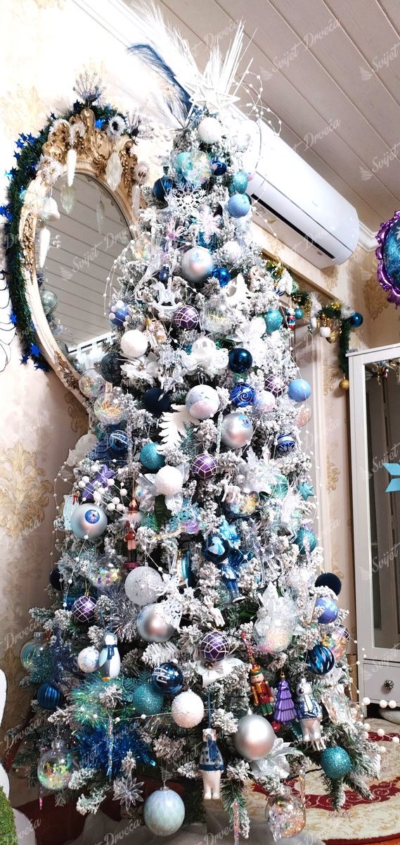 Drvo je izrađeno od kvalitetnih, borovih PVC grančica, prirodno zelene boje, koje su gusto zasnježene umjetnim snijegom. Snijeg se na grančice nanosi najsuvremenijim tehnologijama, zahvaljujući kojima snijeg sa drveta gotovo ne pada. Prilikom početnog raspadanja grančica oslobađaju se neuhvaćeni dijelovi snijega.